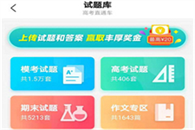 1、打开并登录高考直通车APP后,在首页点击“试题库”,进入后可通过关键词搜索所需试卷。