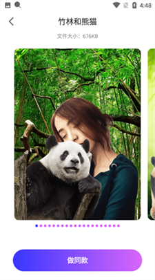 2、根据提示选择喜欢的模板样式,调整图片位置、比例及滤镜效果。