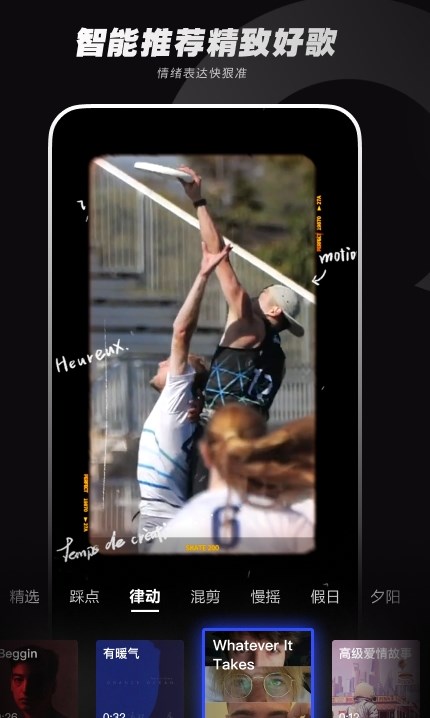 操作并不复杂,任由你来解锁数款闪光点,所有的智能特效都能一键添加,无限放大高光时刻。智能特效组合让视频高光一键出众,比其他人的作品更胜一筹。