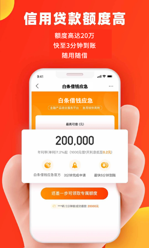 白条借钱应急是是一款非常方便的线上借款app,这这款app当中我们可以通过各种渠道进行借款,借款速度非常快,很方便快捷,为用户解决了资金问题,大大方便了大家的生活,在这里的还款期限也非常灵活,不用担心到期还不上款项,随时借随时还。需要资金周转的朋友千万不要错过了。