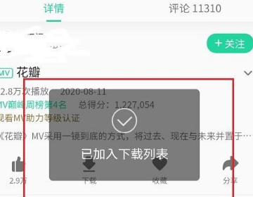 3、进去MV视频播放界面之后,点击下载。