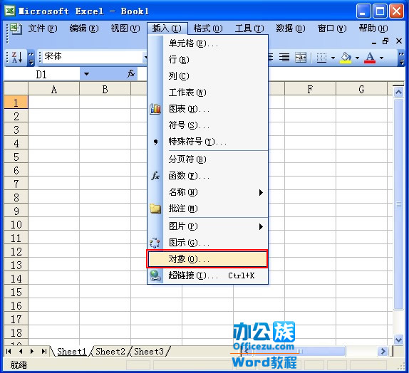 1、打开Excel表格单击菜单栏上的“插入”→“对象”。
