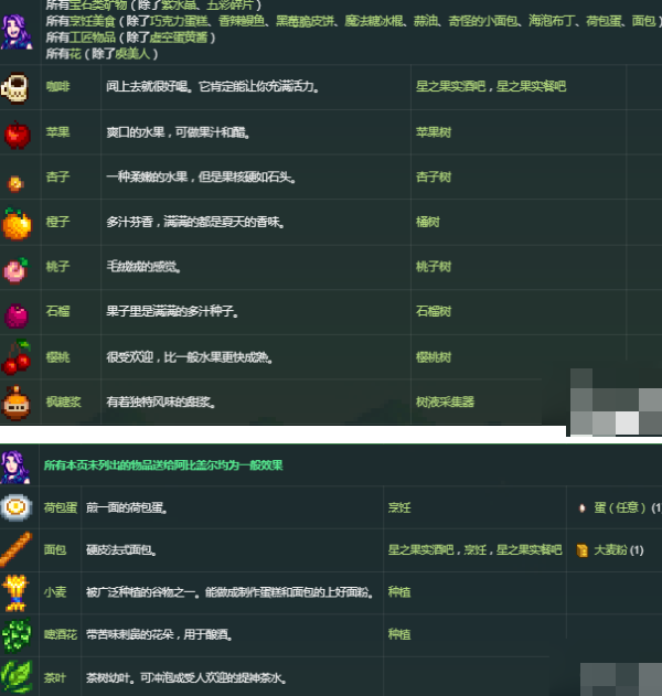 6、秋季种几波南瓜,疯狂给阿比盖尔送南瓜,好感度很快就加满了。(以下三张图是*爱、喜欢以及一般的礼物喜好)
