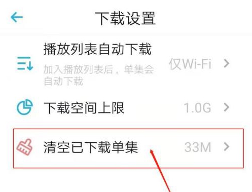 第三步:下载设置中可以体现出每次下载所使用的网络以及下载的空间占比,以及可以进行清理的单集数的内存大小等