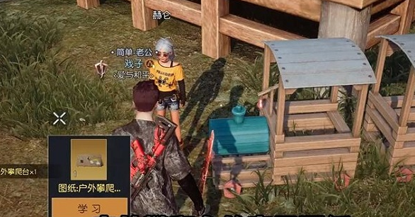 3、上前与其互动就可以获得金色图纸户外攀爬台家居图纸。