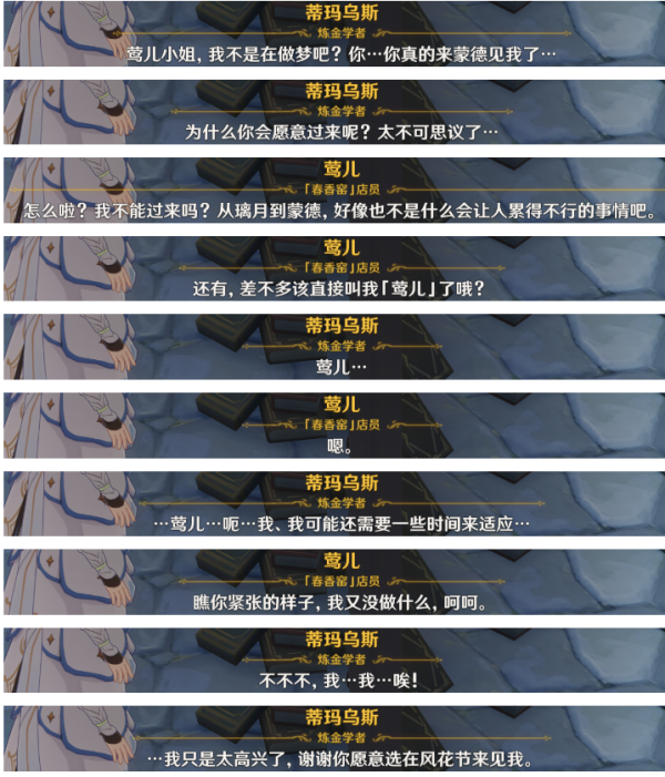 13、蒙德炼金台前(蒂玛乌斯、莺儿)。