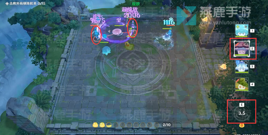 2、有两个距离较近的机关,使用雷蕈兽,选择两个机关,释放战技。