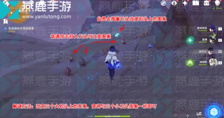 3、让大石头与小石头的图案相同。普通攻击和仙灵都会改变大石头的图案。要跟在仙灵身后,打大石头改变图案,防止被仙灵影响。