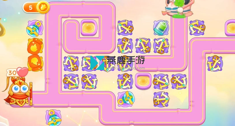 3、天王来了,求稳的话,中间两个喷火升到三级,左边中间右边建立泡泡减速,左下火单防御就可以了,出口建立毒针,其他船锚。