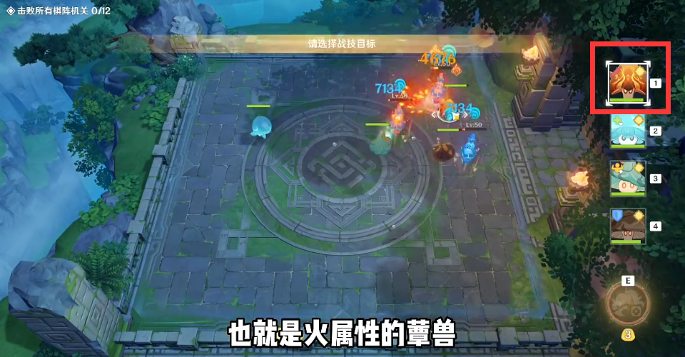 1、出战火蕈兽+水蕈兽+风蕈兽+岩蕈兽。开始挑战。