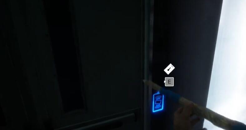 2、有一个上锁的门,使用钥匙卡a来开门,一路往里走。