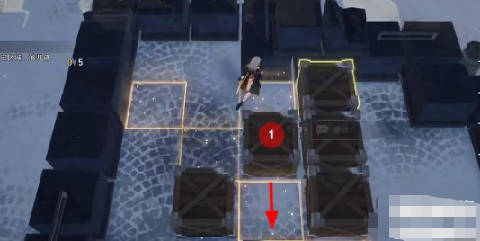 1、进入关卡后先将1号箱子向右推两格,之后再把2号箱子向下推动一格。
