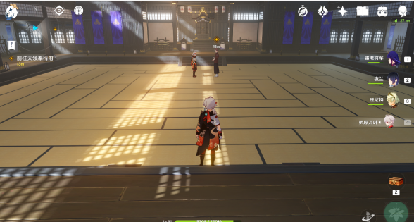 7、进入府中找到九条镰治并与其互动,然后将被袭击的事情告诉万叶。