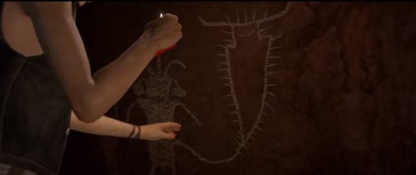 4、进去后在墙上的壁画上发现人与灵体相连的画面。