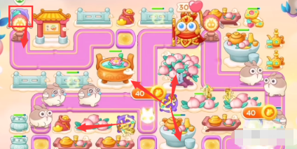 5、仙女出现,根据仙女的位置放置塔防,下图标红放置毒针和导弹,其他放置船锚。