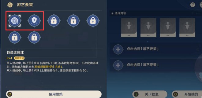第一个:单人挑战中,术球总数小于3,连击数每次增30,下次成功击球,向前随机方向发一颗额外的[术球]。