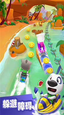 在这款竖版2.5D画风的游戏中,您将跟随汤姆猫及其伙伴们踏上金色沙滩边的摩托艇狂飙之旅。蔚蓝大海与明媚阳光交相辉映,营造出极具代入感的夏日氛围。虽然主角成双出现,但每次挑战仅可选择其一驾驶摩托艇。