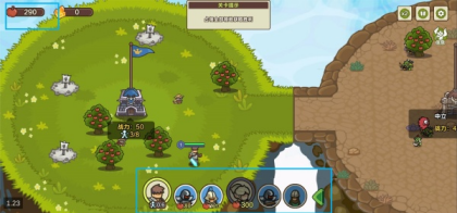 2、进入关卡后,先双击城堡增加采摘果树的农民,积累资源。