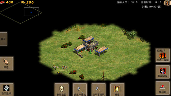 4、在兵营或马厩中训练军队,编组后进行巡逻或进攻;
